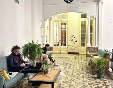 Bright, spacious and relaxed environments to share, work or connect with other travellers.